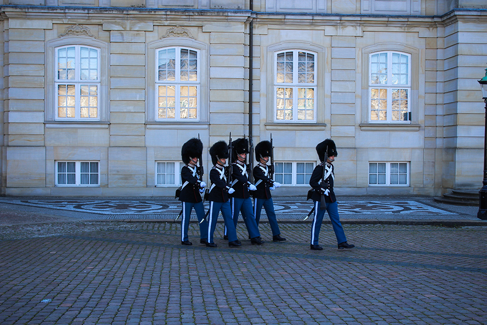 Moving on from Nyhavn, we set course for Amalienborg, the home of the Danish royal family. Amalienborg is made up of four palaces surrounding a square. Dan O informed us that if a Danish flag is being flown on one of the palaces, it means that a member of the royal family is currently staying in Copenhagen. There happened to be a flag on top of the crown prince’s palace while we were there, so we knew he was in town. We stayed to watch the changing of the guard, and then Dan O set us free to roam the city on our own.