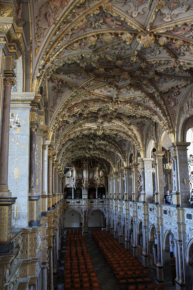 After the quick stop at Fredensborg, we headed for our final, and most impressive stop: Frederiksborg Castle. Approaching this castle was incredible. We walked under towers, over a drawbridge, and past an intricate fountain before arriving at the entrance to the palace. It was hard to tear ourselves out of each room since the architecture was so detailed. Perhaps the most impressive rooms inside of the palace were the chapel and the ballroom which were both elaborately gilded and cavernous in size. Eventually we made our way out to the garden, which was also huge and beautiful. There was a great view of the palace from the garden as well. We could have spent much more time exploring this giant palace, but eventually we had to leave if we were going to make it to the bus in time.