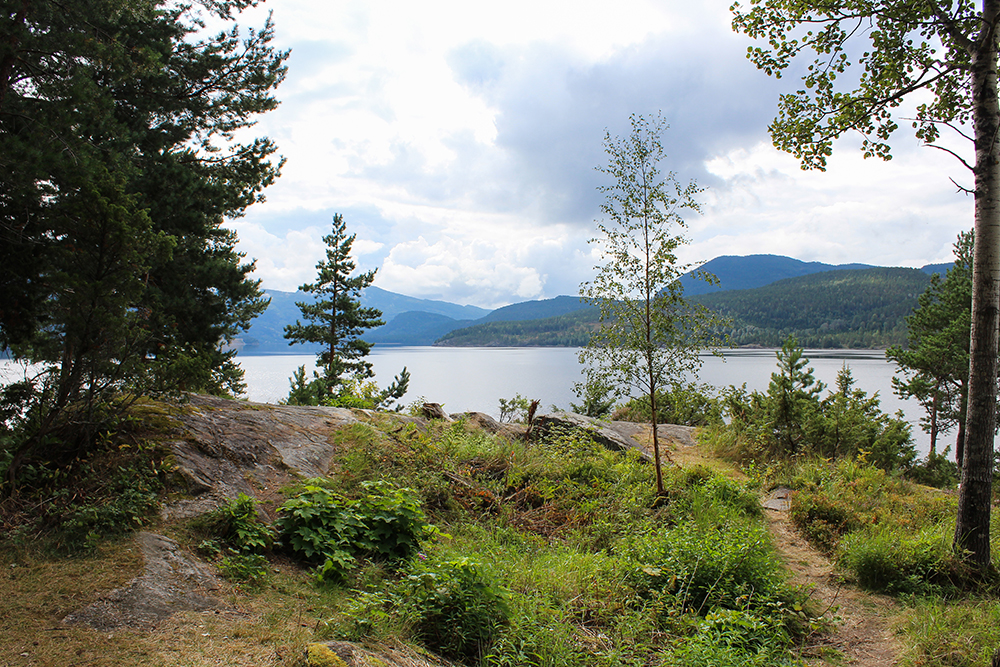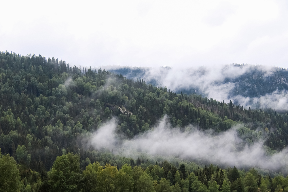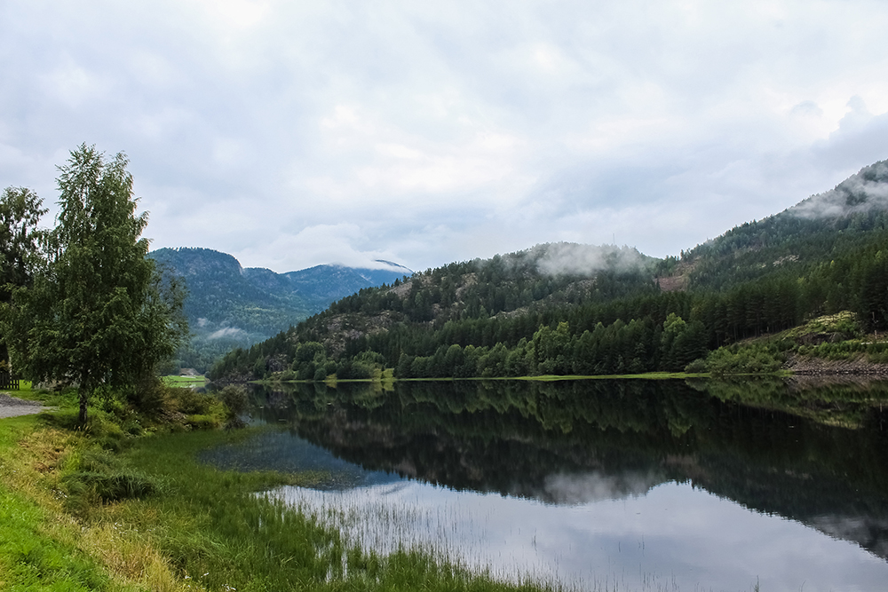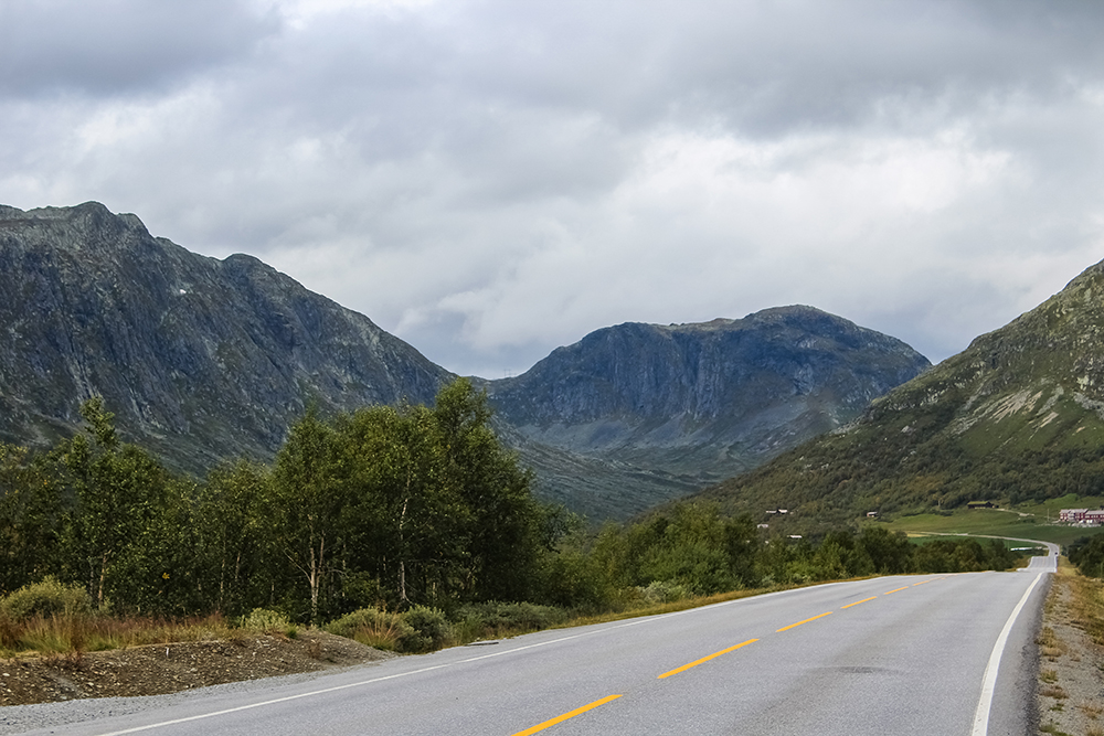 Naturally, we were in a hurry, so we left the ship as fast as possible and speed walked around the bay to pick up our rental car. Once on board we began our drive, and we were immediately rewarded with stunning vistas as we left the city. As we gazed out of the car windows at the placid lakes and towering mountains of the Norwegian countryside, we echoed a chorus of “Wows” at each new sight. The beauty of Norway is overwhelming, and we found ourselves pulling over to admire the views again and again. The landscape changed as we climbed higher into the mountains. Lush green hills morphed into barren, rocky fields, and then back again as we made our descent toward Flåm. We drove in and out of a series of tunnels, including the 25 km Lærdal Tunnel, the longest road tunnel in the world.