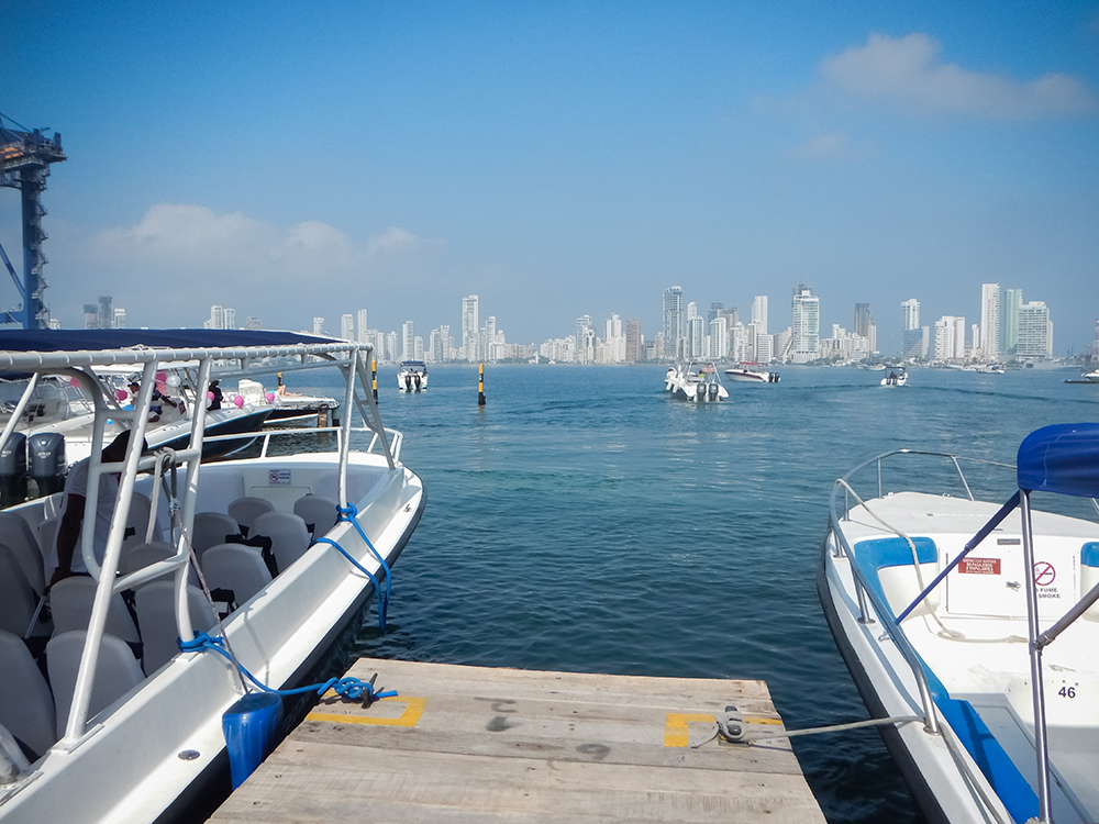 We checked out of Las Carretas early and caught a cab to the dock where we were to board a ferry to take us to Isla Grande. Although only a mile across, this is the largest of the Rosario Islands, an archipelago about an hour’s boat ride from Cartagena. Much of the ferry trip was spent looking at the open sea, but it did provide some nice views of the walled city, Boca Grande, and Boca Chica before we docked at the tropical paradise that is Isla Grande. Our ferry ride was booked through our resort, Hotel San Pedro Majagua. When we disembarked from the boat, we were greeted with sweet smelling cool towels, and passion fruit welcome drinks. We wandered the grounds a bit, admiring the tangled Banyan Trees, and the brilliant turquoise water of the caribbean sea. After checking in, we dropped our bags at our private suite, which was complete with an outdoor hammock and lounge area, and a palm frond roof.