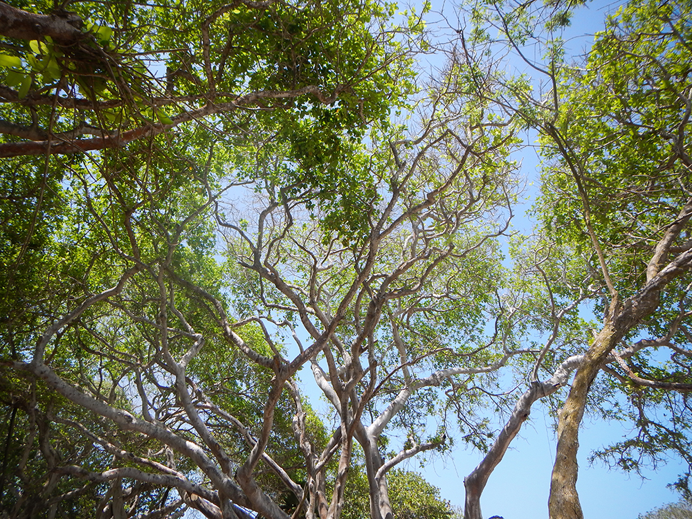 Our guide brought us back to shore and we dried off and changed to go find some dinner. We had read that Majagua’s food was overpriced, so we ventured out into the island in search of somewhere else to eat. We ended up at Eco-Hotel La Cocotera, where we ordered the chicken (one of two options) for dinner, and then spent some time exploring their beach and climbing Banyan trees while we waited for the food to arrive. It took about an hour to get our food, and it was well-worth the wait. The chicken was delicious and cooked to perfection.
