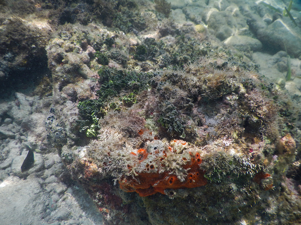 After leaving the secret beach, we paddled back to our favorite snorkeling spot from the previous two days and were surprised to find many more fish than we had seen before. Little silver fish teemed in schools of thousands, glinting as sunlight trickled through the waves.