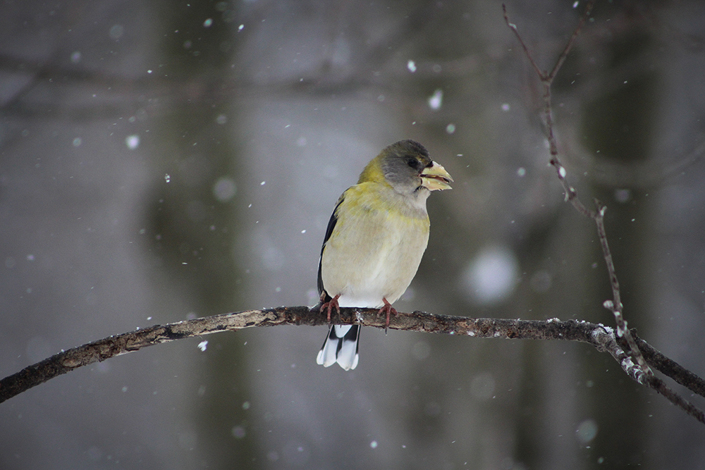Once the teams were gone, we walked through the rows of dogs, petting them until I predictably got distracted by a bunch of colorful birds in the woods. I switched to my zoom lens, and snagged a few shots of the bright yellow birds, which turned out to be Evening Grosbeaks. Then we went into the house to thank Tasha and pick up a few souvenirs in the gift shop. The entire experience was really remarkable, and we are planning on going back next winter to take an actual sledding trip when we have more time and notice to book it.