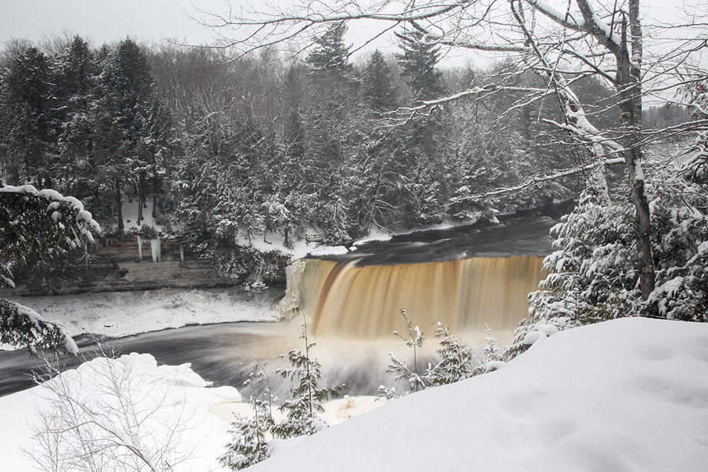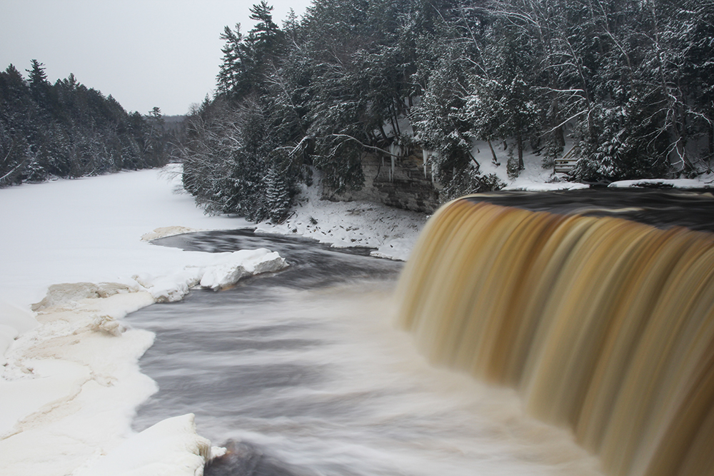 Not long after our weekend excursion to Pictured Rocks, we found ourselves once again headed north in search of winter (which seems to be absent in the lower peninsula this year). Our destination this time was Newberry, Michigan, the home of Tahquamenon Falls State Park. This is the second largest state park in Michigan, and is a consistently popular destination due to the overwhelming beauty of the waterfalls and surrounding forest. I have been to Tahquamenon in the summer, and it was absolutely beautiful, but I had never been in the winter and I was eager to see the falls covered in deep, fluffy snow.