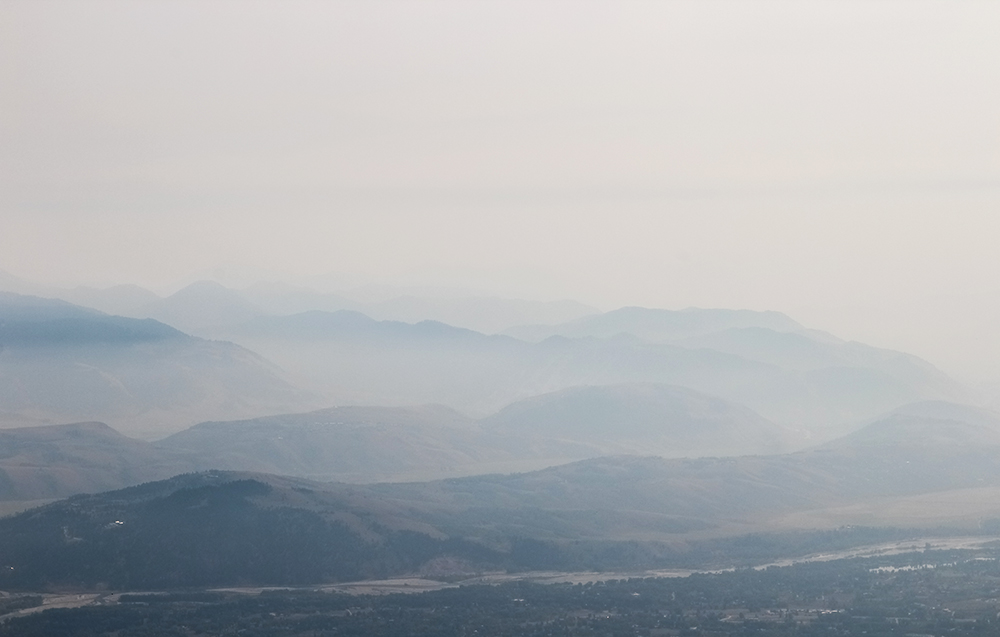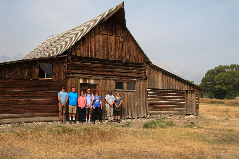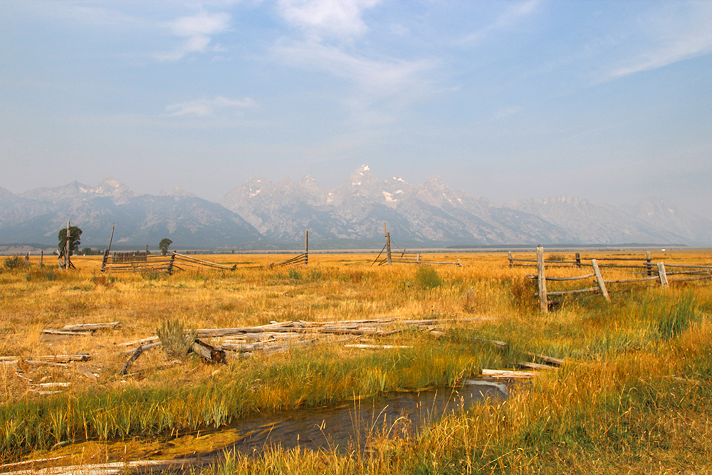 We changed and made the short drive to our first stop of the morning, Mormon Row, a collection of historic homesteads with an unobstructed view of the Teton range. We wandered around the old farmhouses and barns as late morning sunshine warmed the air, casting a golden glow on the dried sage grass. The sky was hazy from the smoke of far off forest fires, so we did not get a crisp view of the mountains, but the morning was beautiful nonetheless.