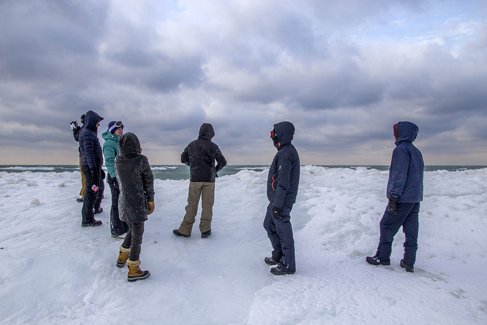 Just a day after my frigid snowshoeing experience, the cold let up significantly and temperatures rose above freezing. This was perfect because we had made plans to drive up to Frankfort and explore the magnificent ice formations at Point Betsie. This has been a favorite day trip spot for me for the past few years, but I had never been there in the winter before. The ice build-up exceeded my expectations, and the eight of us had a lot of fun dodging massive waves as we explored the ice.