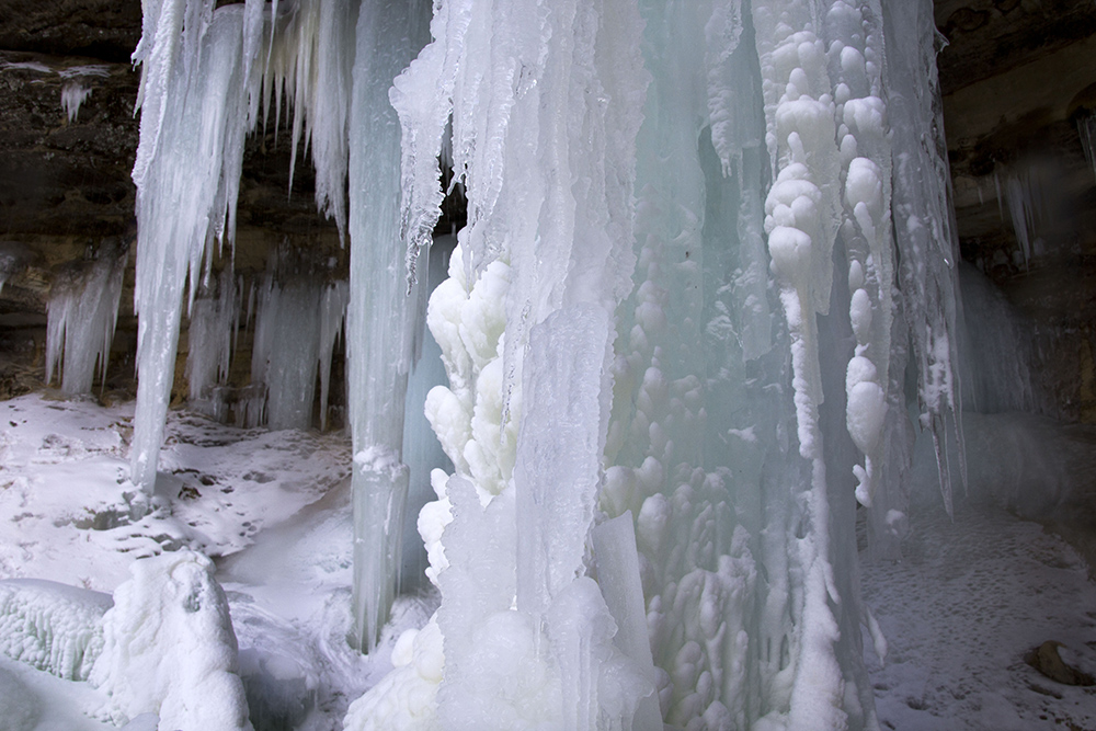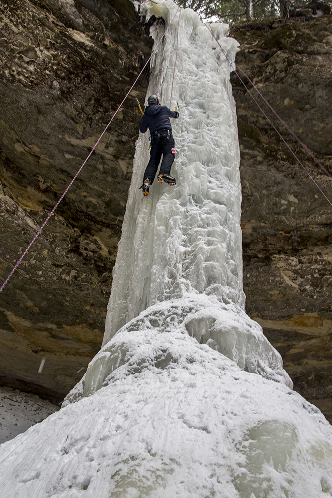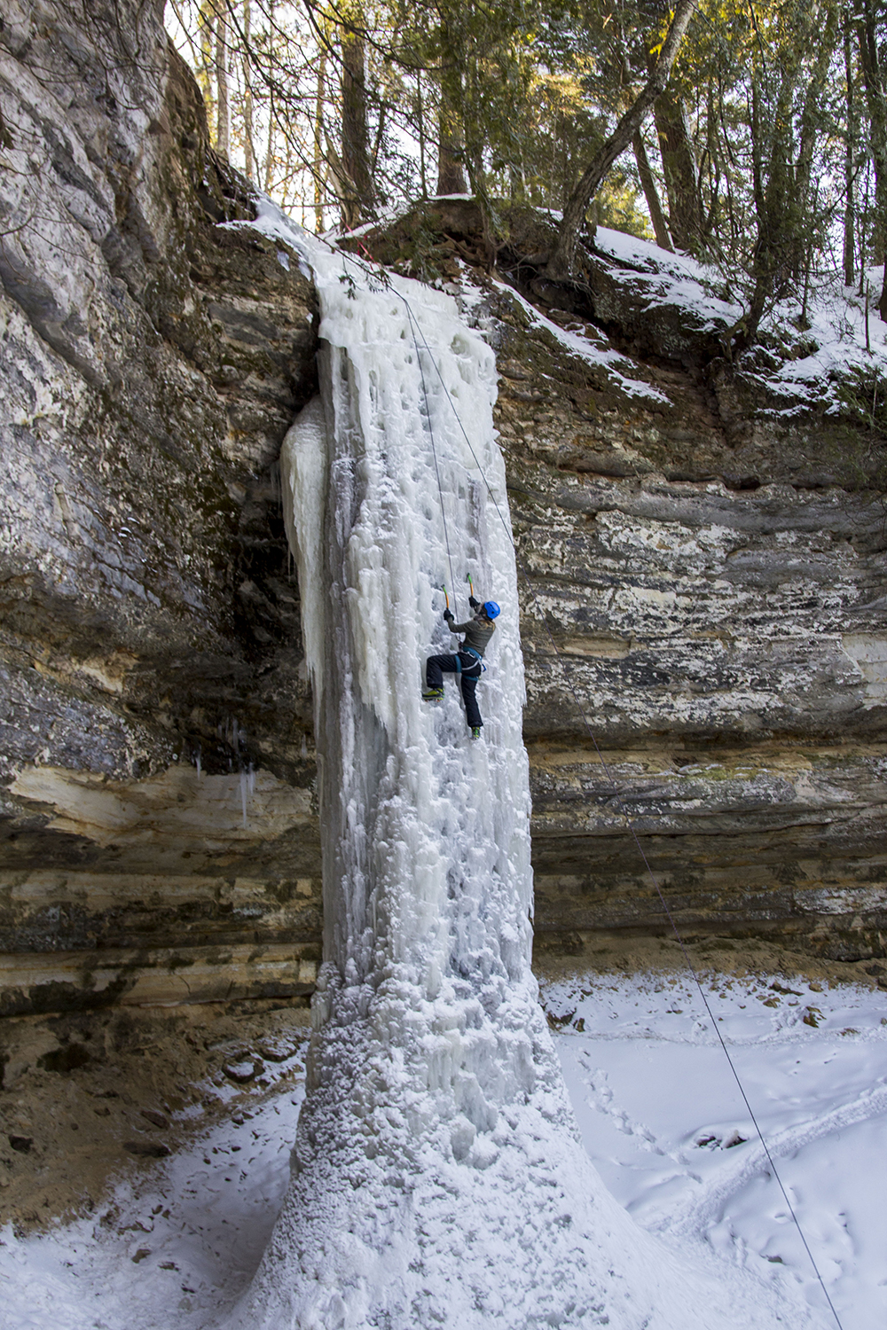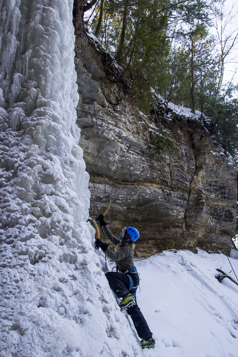 In January we drove up to Munising with some friends to climb at Pictured Rocks National Lakeshore. It was another one of those painfully cold weekends. So cold in fact, that frost formed on our eyelashes as we approached the icefalls. When the weather is that bitter, it can be hard to keep yourself going and I only ended up doing a couple of climbs each day, but being out on the ice was well worth it.
