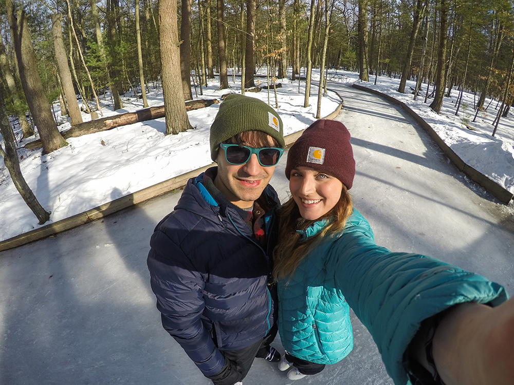 Finally, Vince and I made one last trip to Muskegon around my birthday. We went on a snowshoe hike and ice skated through the woods at the Muskegon Winter Sports Complex. Then we hiked out to the lake and tromped around on the ice bergs a bit.
