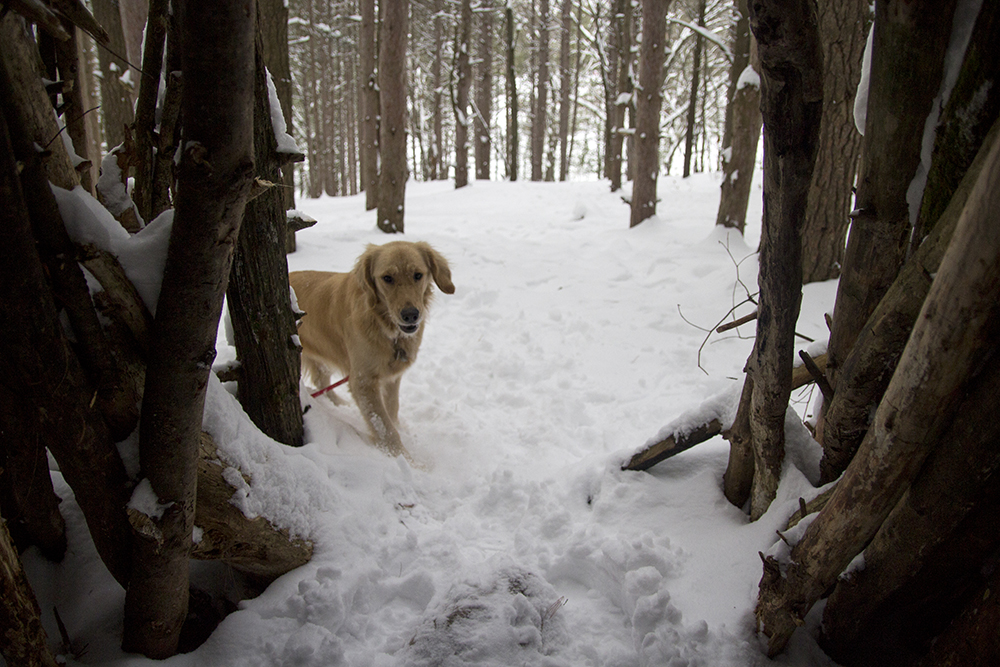 With the drone incident fresh in mind, I went for a tamer activity the following day. My dad and I brought the family dog, Azul, to Provin Trails for a hike. Provin is another one of my old haunts that I haven’t visited in a while. There was fresh snow which made for some magical moments as it wafted down from the tree tops in an ethereal blur.