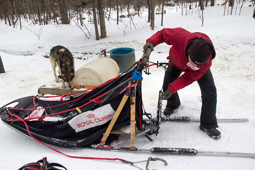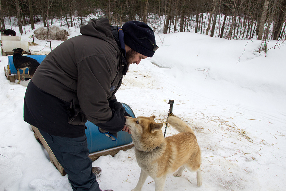 Our quiet morning in McMillan, Michigan immediately erupted into a chorus of frantic barks and howls as we stepped onto a yard lined with sled dogs. The energy in the air was palpable, causing my own already considerable excitement to mount. I was about to fulfill a lifelong dream, and my heart raced in anticipation as we made the rounds, meeting the dogs that were about to take us on a ten mile journey filled with adrenaline.