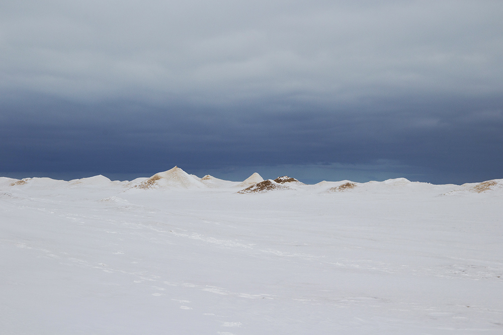 The next morning we slept late before loading up our cars and heading even further north. All weekend long, people had been telling to make sure we stopped under the Mackinac Bridge to see the blue ice on way home, but we had one more stop to make first. We planned to hike along the shoreline at Whitefish Point before turning south. The main attraction at Whitefish Point is a shipwreck museum that is closed durning the winter, but our main interest was in seeing Lake Superior which is, in my opinion, the greatest of the Great Lakes (although it’s a close race). Superior was in the mood to impress that morning, and we all looked over her icy shore in awe at the natural sculpture that sprawled before us.
