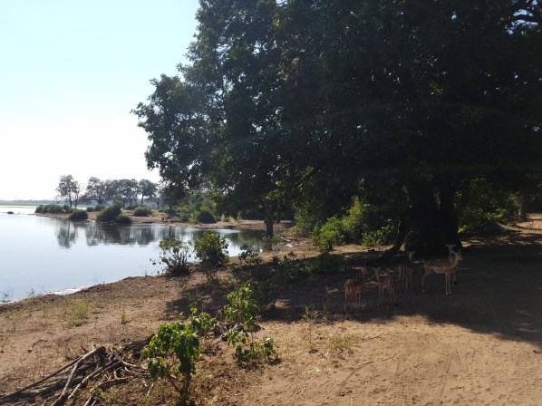 The buffalo was heading for the river to escape the heat, and in following him we soon came to a viewpoint that overlooked the Chobe. This is where we started to see more wildlife. Impalas grazed in herds along the river banks where hippos, crocodiles and monitor lizards lounged.