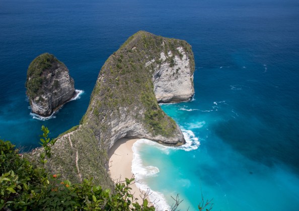The road got worse from there, but we were only a few minutes away from Angel’s Billabong at that point. We had to pay 10,000 IDR (about 70 cents) for parking once we reached our destination. This is fairly standard throughout Nusa Penida and Lombok. We parked the bike, and applied more sunscreen before following a trail to the viewpoints. Angel’s Billabong is right next to another popular spot called Broken Beach, and that was what we came upon first.