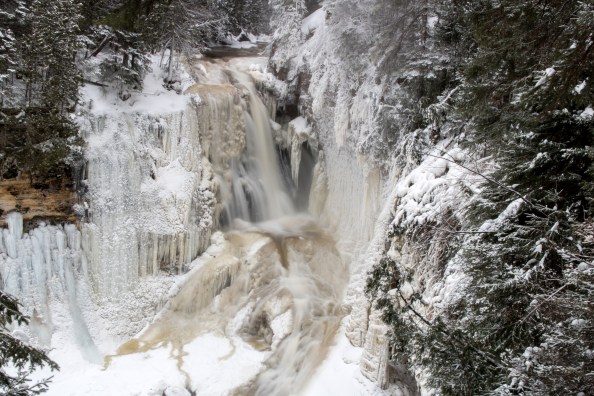 Snow and ice hold an indescribable beauty for me, and I love to go outside and explore the frozen wonderland that Michigan becomes every winter. I am inspired by an equal love for adventure, and experiencing nature’s artistry. Those were the drives that compelled Vince, Jordi, and me to climb Miners Falls on an extremely cold weekend in the Upper Peninsula.