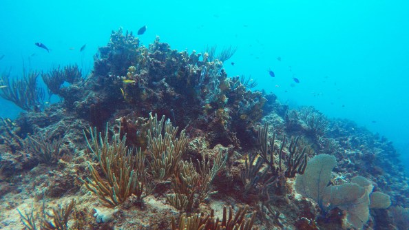 The boat ride out to our first dive site was a little nauseating, but apparently the water was calm compared to the previous day. Nonetheless I was relieved when we finally geared up and jumped into the warm Caribbean waters. Our first dive site was named “Sand Slide” because the dive starts by following a sloping sand bank down to depth. Another notable thing about this site was that it was a filming location for Pirates of the Caribbean: On Stranger Tides. There used to be a small island nearby that was used for the last scene of the movie, but the island sunk during Hurricane Maria.