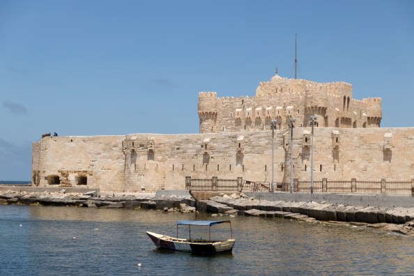 There wasn’t time for us to go inside the citadel, but we did get to walk along a pier to admire it from across a bay dotted with weather-worn fishing boats. The cool sea breeze was a welcome feeling when compared to the extreme heat we had been experiencing in Cairo, and I wished that we could spend a couple more days by the sea in Alexandria.