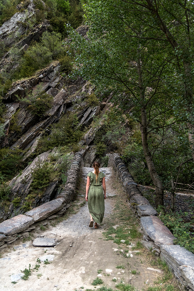 Although we’d already had a long day, we stopped at one last historic site before going in search of our Airbnb, the bridge of Sant Antoni de la Grella. This simple stone bridge was once the only way to get to La Massana, the town we would be staying in during our time in Andorra.