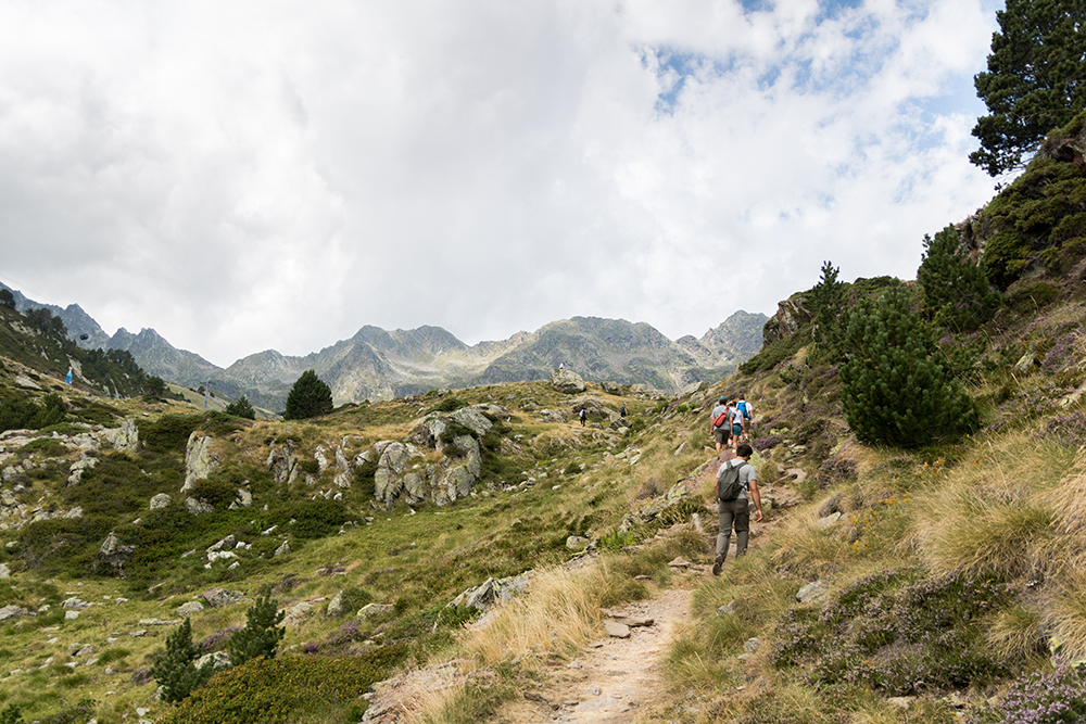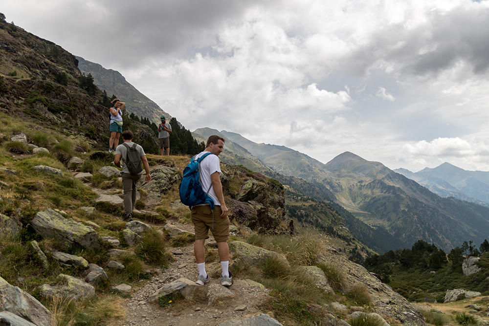 After a quick stop back at the apartment, and then another for breakfast, we were finally ready to go. It only took a half hour to drive to Ordino Arcalís Ski Resort, where we would be starting our hike to the Tristaina Lakes. The trail was beautiful right from the start, where it went up a steep hill with sweeping views of a valley behind us.