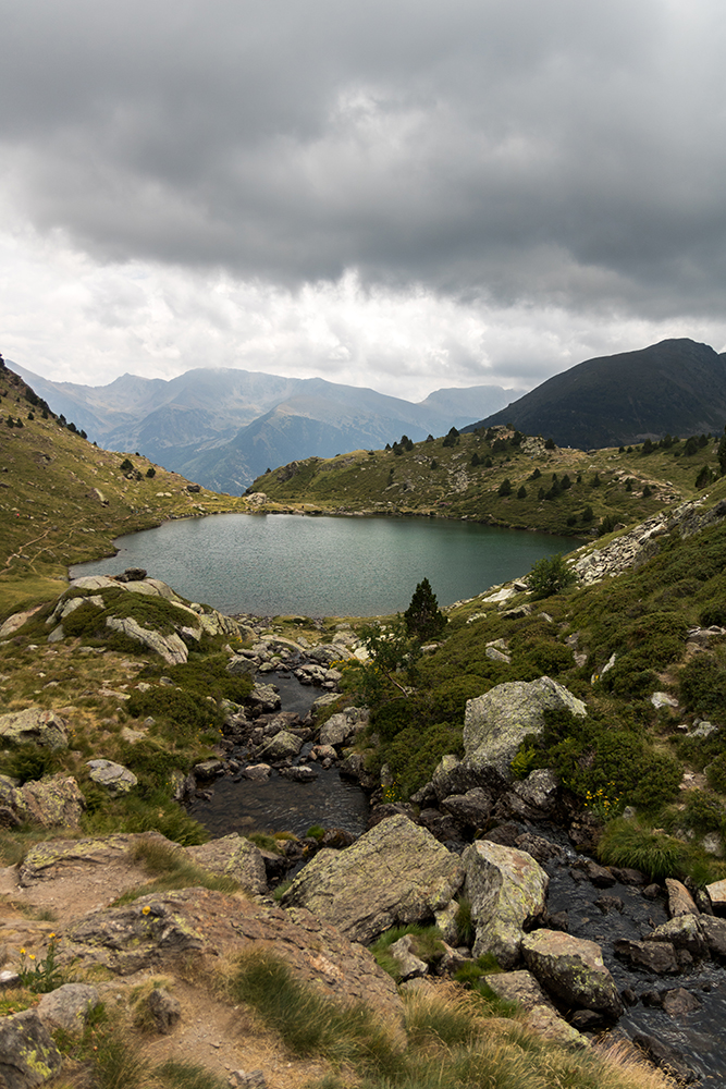 The trail changed from dirt to rock and followed a river all the way to Estany de Més Amunt, which roughly translates to Lake Above. The third and final lake was a stunning emerald color.