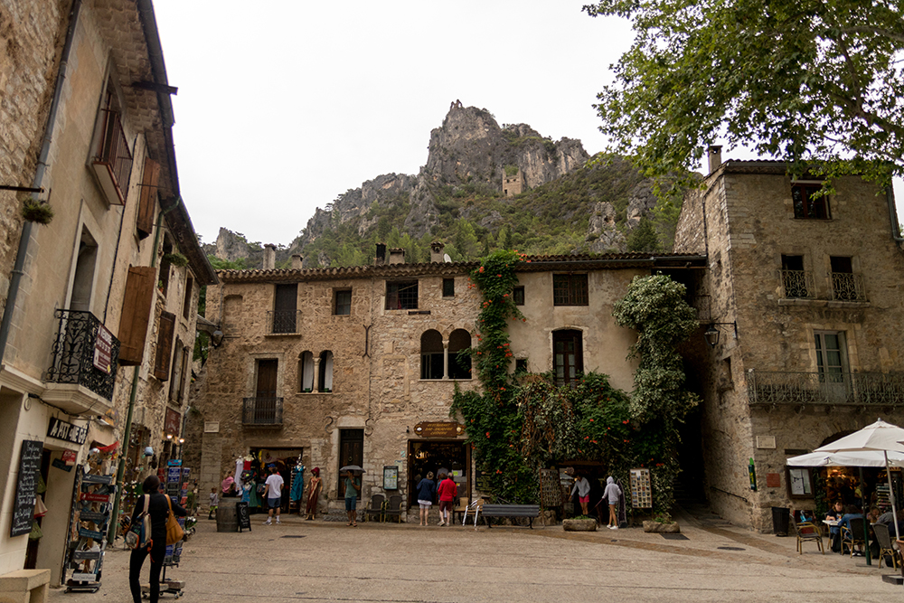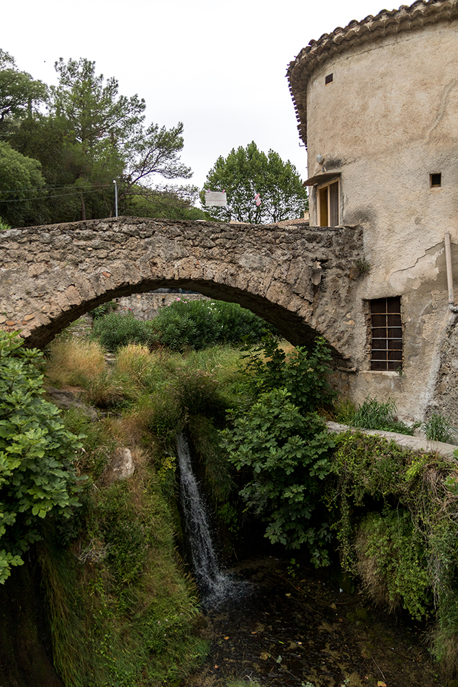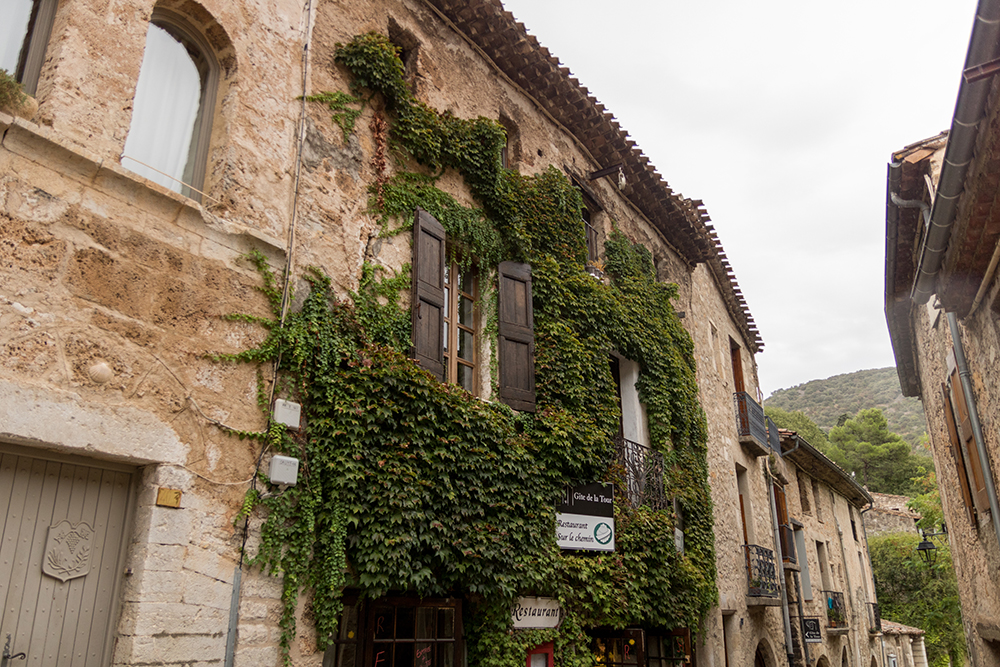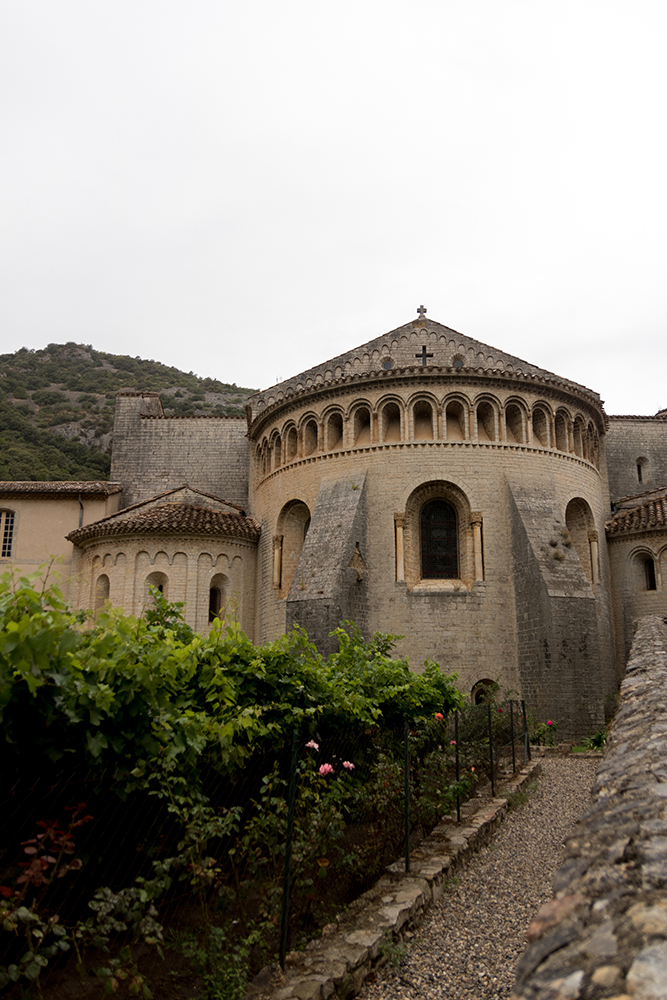 We arrived at the fully preserved medieval village of Saint-Guilhem-le-Désert under somewhat stressful circumstances. There was no parking to be found in the town’s only lot, so we had to drive back out of the village and find a spot along the side of a winding, mountainous road. Just as we started to hike back into town, the sky began to rain. Nevertheless, we walked back into the village to explore its mysterious and quaint maze of stone buildings.
