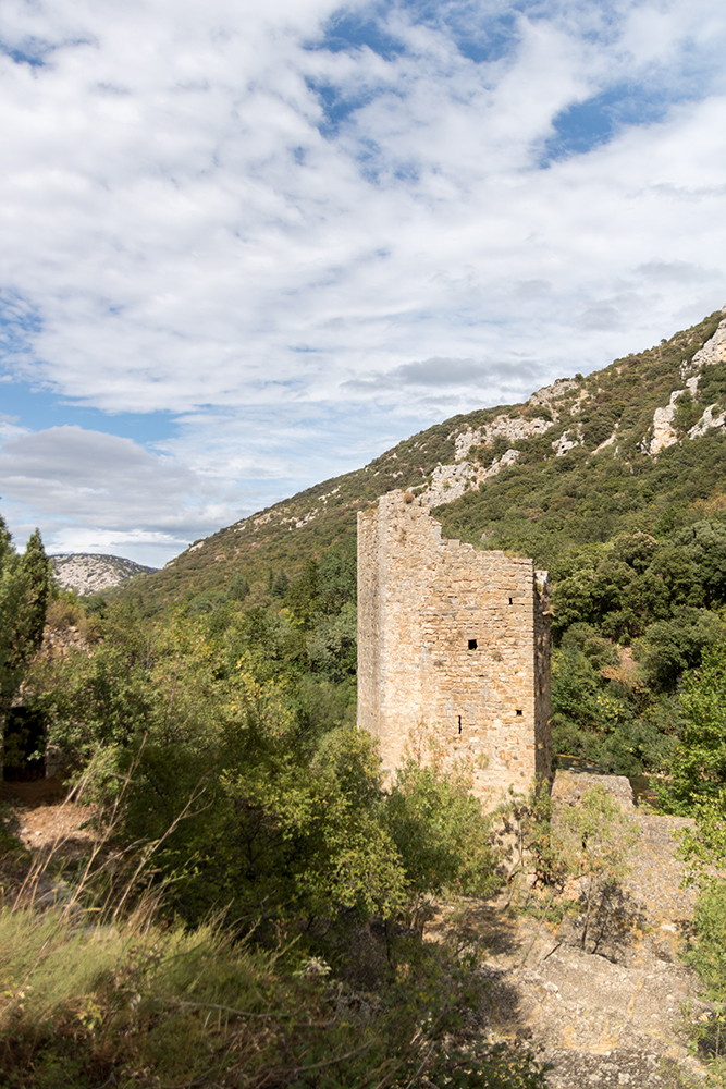On our way back to the car we stopped to check out a crumbling stone tower alongside the Hérault River.
