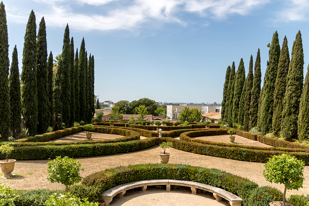 The final stop on our French road trip was at the Château de Flaugergues, an estate that was constructed by a French aristocrat starting in the 1690’s. The Château, which is still occupied by a family today, is open for garden tours and wine tastings, and more limited house tours. It was midday by the time we arrived and the day had become oppressively hot and humid. That didn’t stop us from leaving the comfort of our air conditioned cars to visit the mansion’s gardens and do a wine tasting.