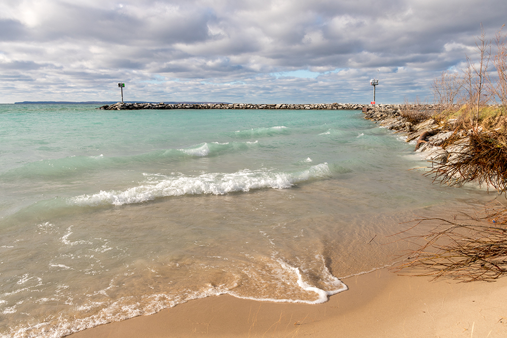 By November, temperatures in Michigan were dropping fast. My brother, David, and I decided to go up north to go rock hunting before Lake Michigan inevitably became engulfed in ice and snow. We drove up to Leland, Michigan, where we planned to search for Petoskey Stones and Leland Blues. Petoskey Stones are the state stone of Michigan, and are actually made of fossilized coral from an ancient coral reef. Leland Blue Stones are actually iron ore slag that was dumped into the bay from a smelting plant that used to operate near Leland. So neither of our desired “stones” were really stones, but we were excited nonetheless.