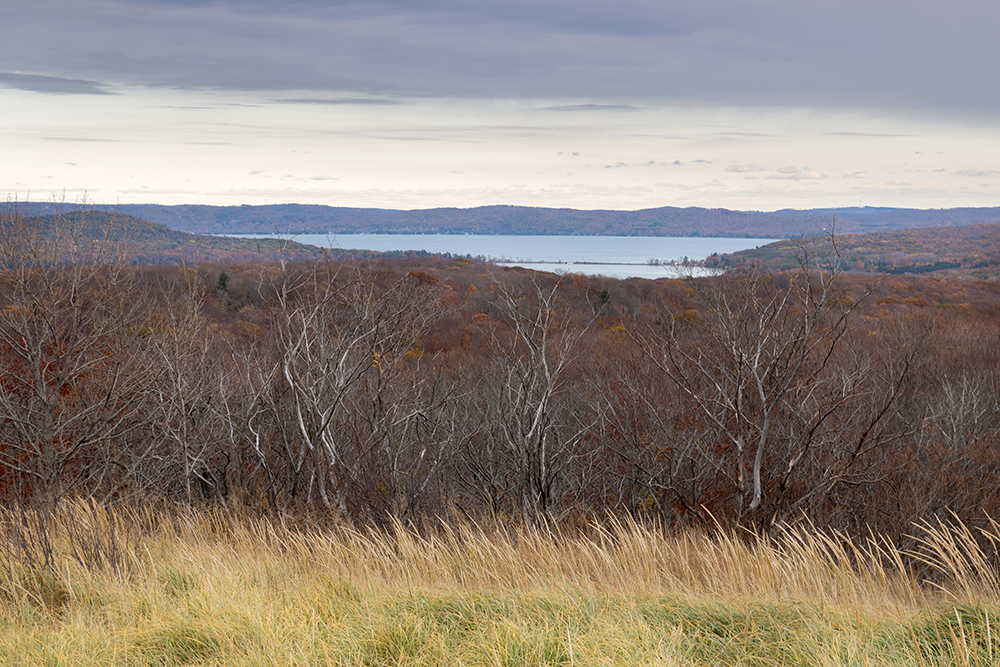 Since we were so close to Sleeping Bear Dunes National Lakeshore, we decided to drive its scenic road, and we stopped at the various overlooks along the way where enjoyed views of the dunes while shivering profusely.