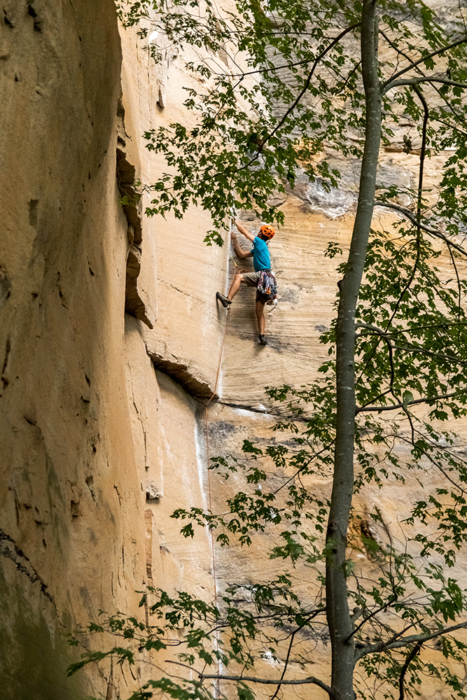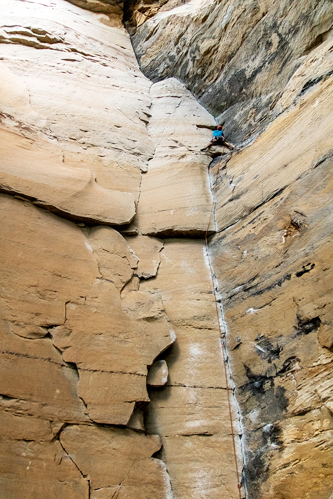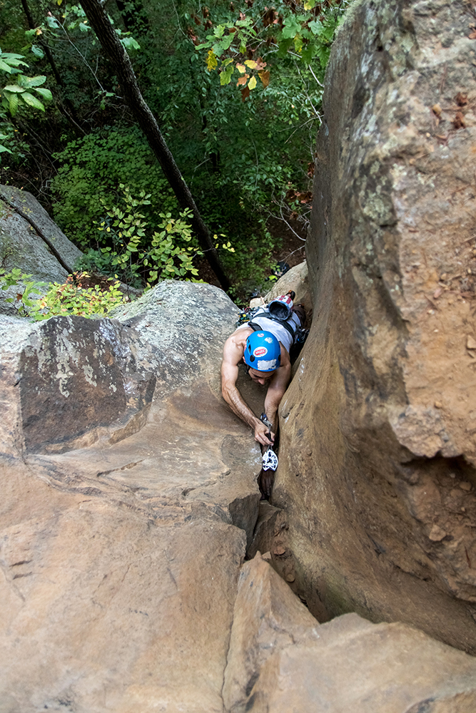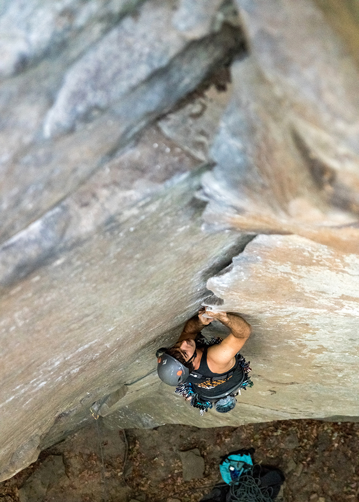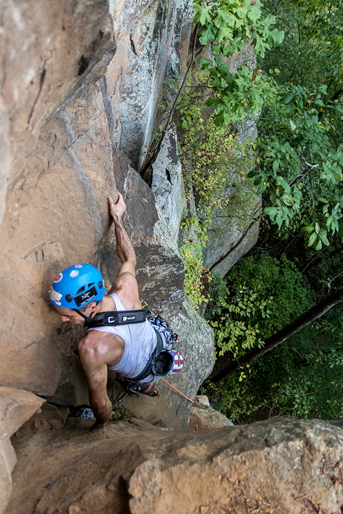 The weekend started out extremely normally. We made the eight hour slog to Kentucky on Friday night, arrived around 2:00 am, set up camp, then got a few hours of sleep before waking up to get to the crag. We spent Saturday doing a mixture of sport and trad climbing with our friends Jordi, Anthea, Travis, and Meagan. I was excited to do some photography rigging as it had been months since I’d had the chance to photograph a climb from the top.