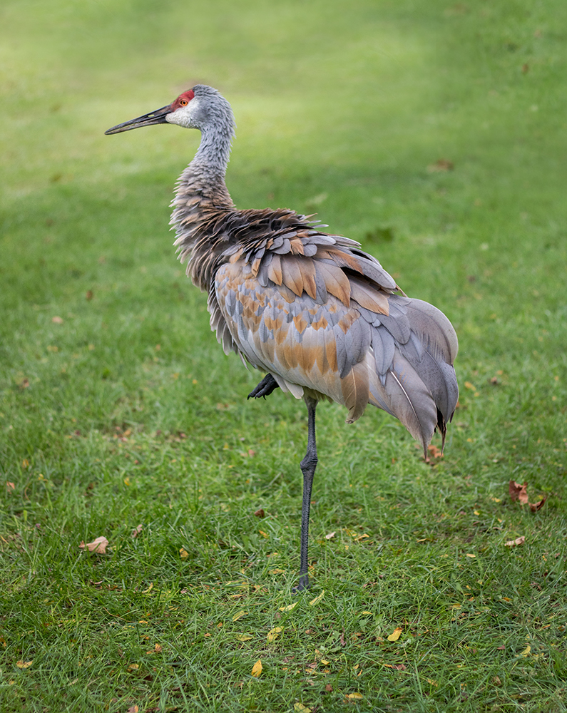 Before we even parked our car, we saw cranes stalking through the lot, utterly ambivalent to the traffic of the extremely popular park. Naturally, I was practically jumping up and down in excitement, and I was out of the car as soon as it stopped moving. The pair of cranes was still in the area and we approached them with caution, but quickly realized they weren’t concerned by us at all. This gave me and opportunity to photograph them with my 50mm portrait lens instead of a large telephoto lens and I loved the results.