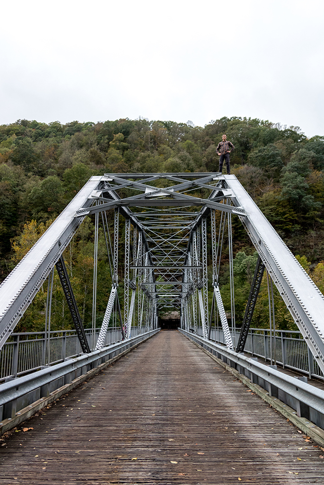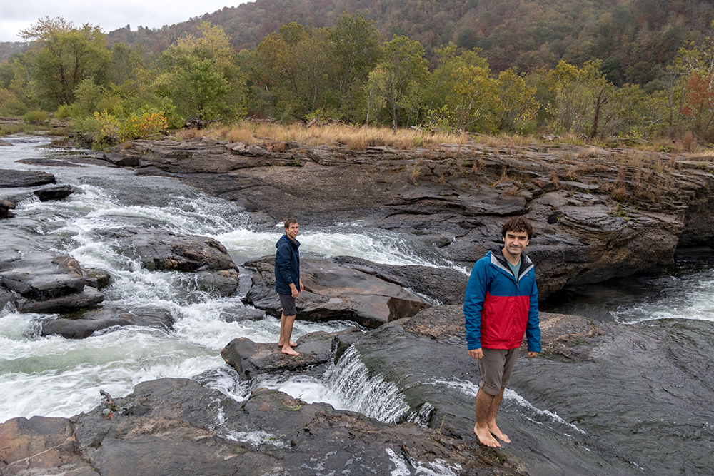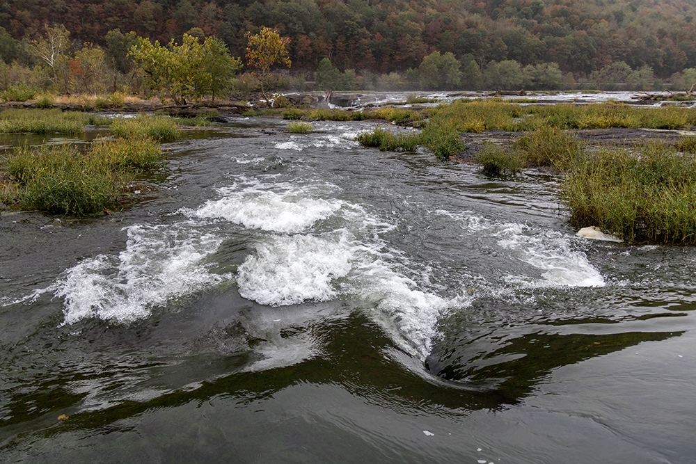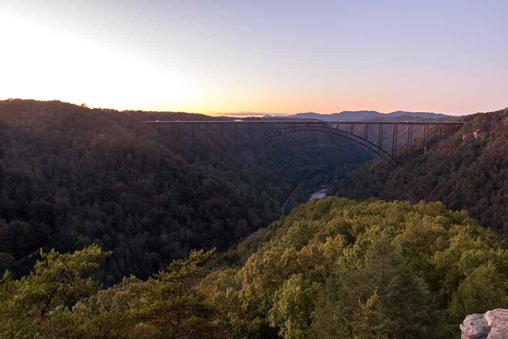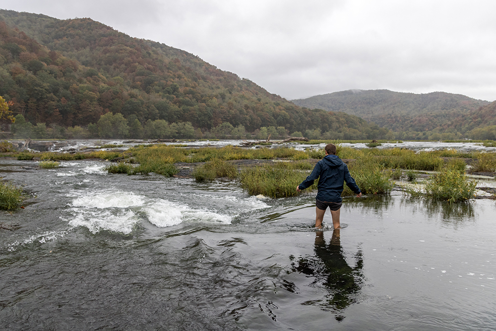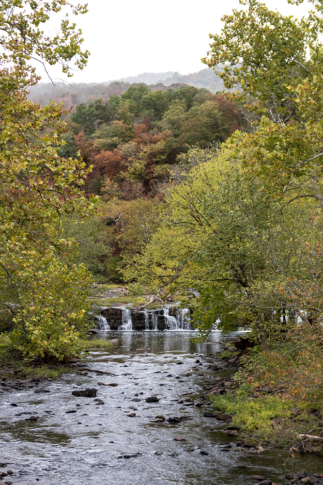 We decided to drive south, stopping first at a scenic overlook called Grand View. This spot gave us a beautiful unobstructed view of the New River snaking through the gorge, where fog rolled over the hills dramatically.