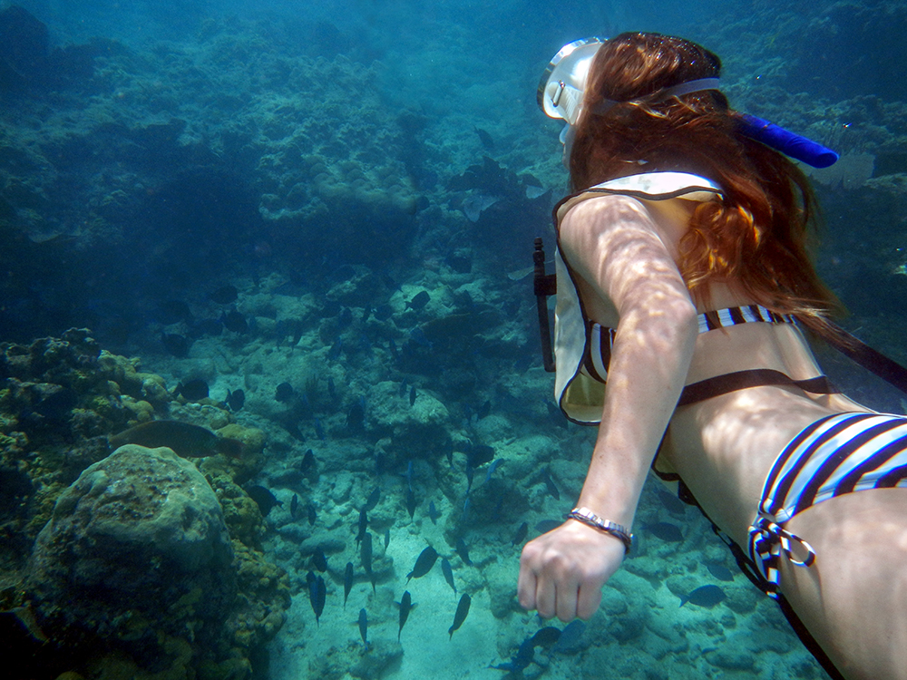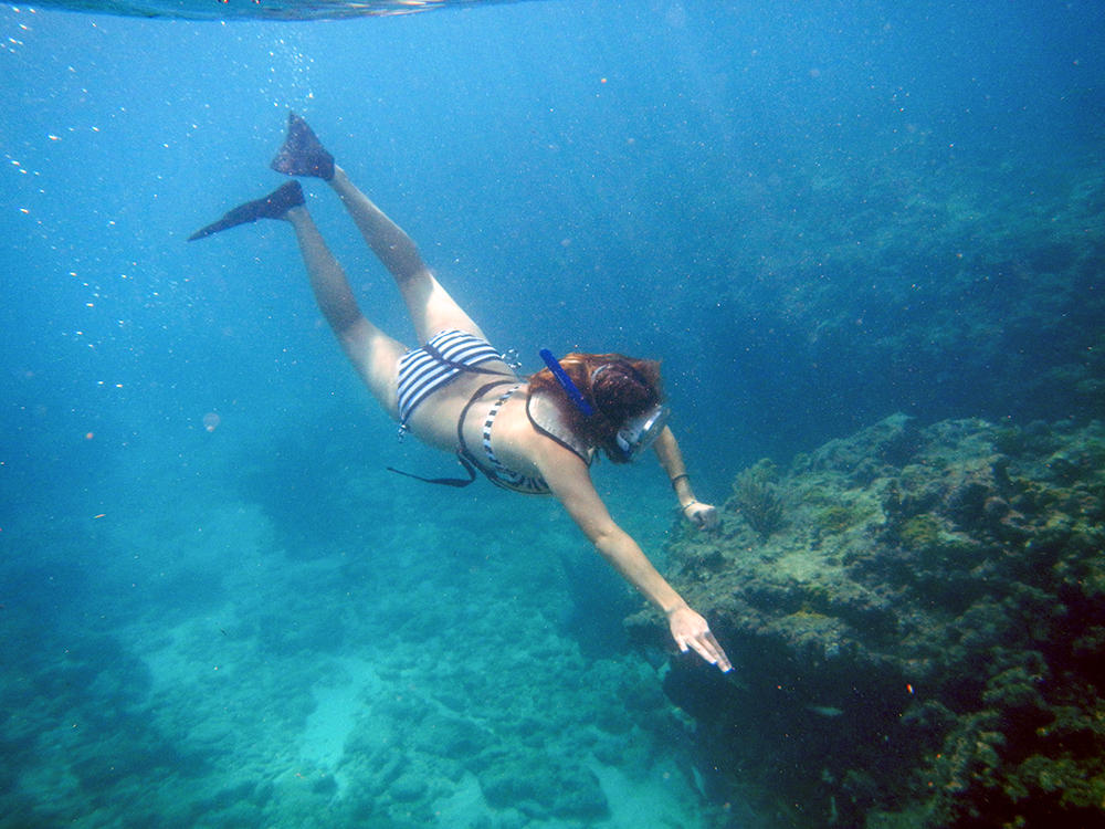 This was my first time seeing such massive coral structures, and it was also my first time experiencing what it is like to drift snorkel. There was no effort on our part as the strong ocean current carried us over the reef. All we had to do was relax and watch the magical scene below us as we floated past. A school of large barracuda hovered ominously off in the distance, their spooky silhouettes putting me to mind of dementors from the Harry Potter world. We even saw a couple of green sea turtles swimming at the ocean floor. This was my first time ever seeing a sea turtle, and I was over-the-top excited about it. To be fair, I’ve been over-the-top excited every subsequent time I’ve seen a sea turtle too, but that’s beside the point.