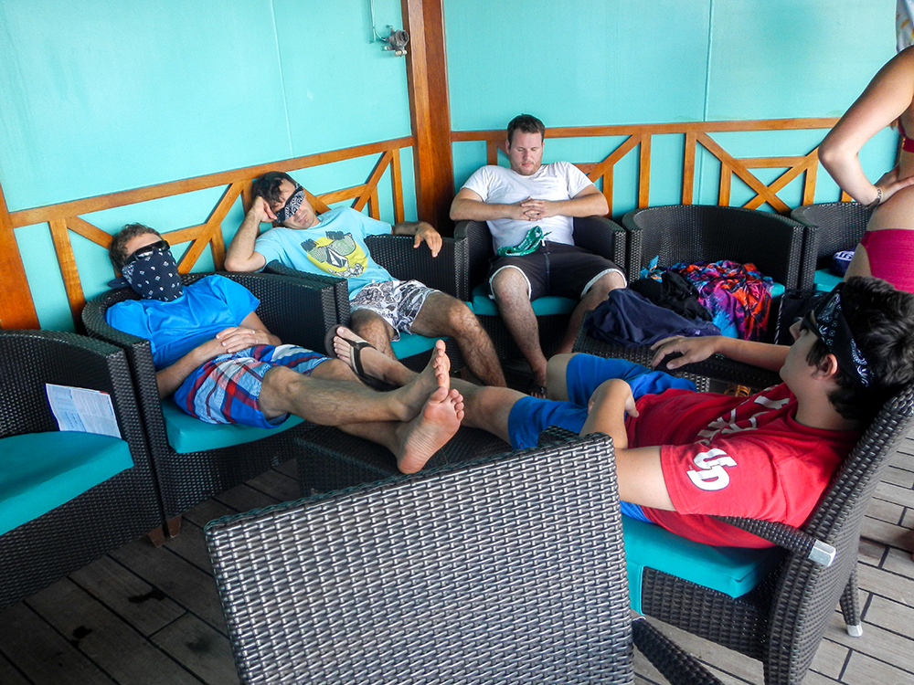 We had taken a Carnival cruise the previous summer for our honeymoon, so we thought we knew what to expect, but our experience turned out to be quite different, despite even visiting one of the same islands. This cruise was much less crowded than our previous one, which made for shorter wait lines everywhere we went. The seas were also much calmer, which made the ship feel more like being on solid ground. The biggest difference, however was going with a group of people instead of just the two of us. Right from the start, it was obvious that our “fun days at sea” were actually going to be a lot more fun now that we had other people to goof off with.