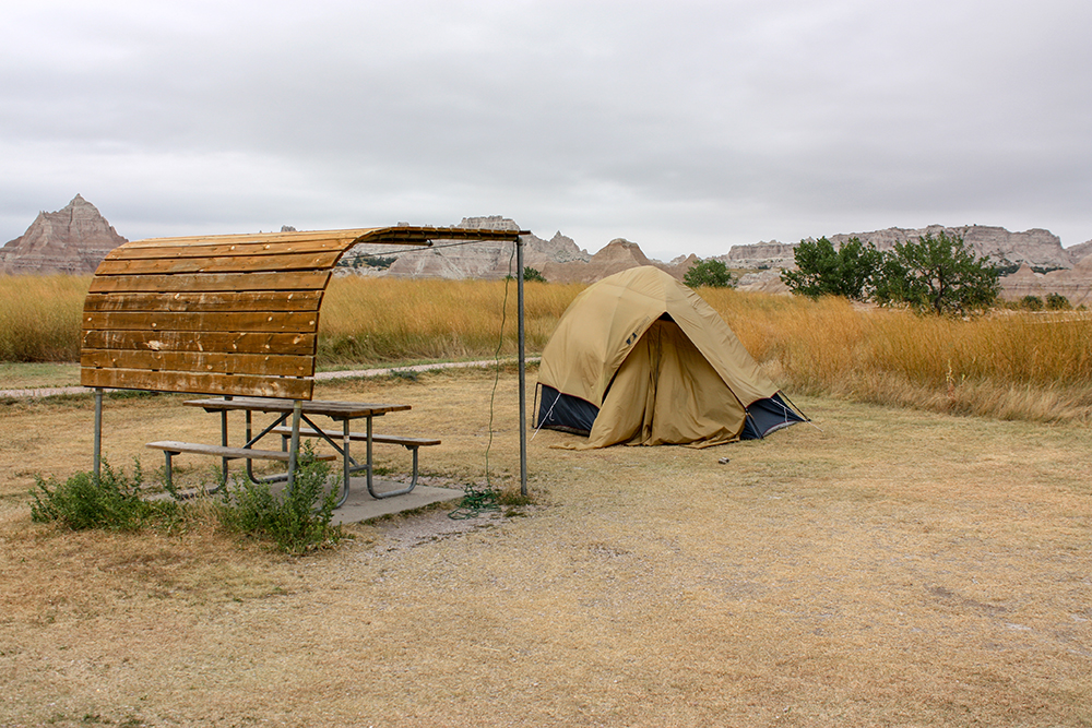 Since it would still be hours before daybreak, and we couldn’t check into our campsite until morning, we decided to park somewhere and sleep until then. We woke up with the sunrise to realize that we had parked at a scenic overlook where we got our first view of the Badlands in daylight.