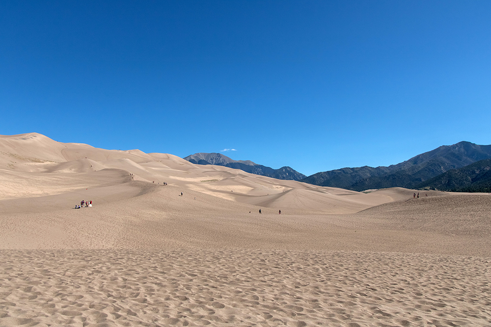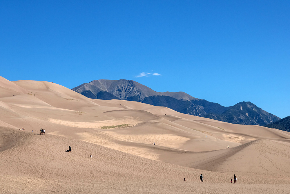With more visitors arriving, and the heat of the sun starting to hint at uncomfortable temperatures, we donned masks and started the descent. Soon we were back at the car with most of the day left to try to fill with activities. After all, what do you do at Great Sand Dunes once you’ve already climbed the dune?