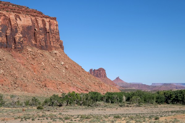 Our day hit a snag almost at once as we found ourselves at the wrong district of the park. We’d inadvertently entered the remote Needles District into our GPS rather than our intended destination, Island in the Sky. The Needles District is undoubtedly beautiful, but there is not much to access there unless you happen to have an ORV, which we did not. Luckily though, the route took us through stunning Bears Ears National Monument, so we got to enjoy some beautiful views despite still being two hours from our real destination.