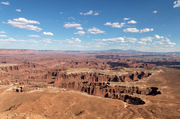 The scale of this crater really needs to be seen in person for full comprehension, but it basically looks as though the landscape has been ripped apart by some incomprehensible force. In fact, that may very well be the explanation for this geological anomaly. One of the leading theories about how Upheaval Dome was formed is that it was blasted into the earth by a meteorite.