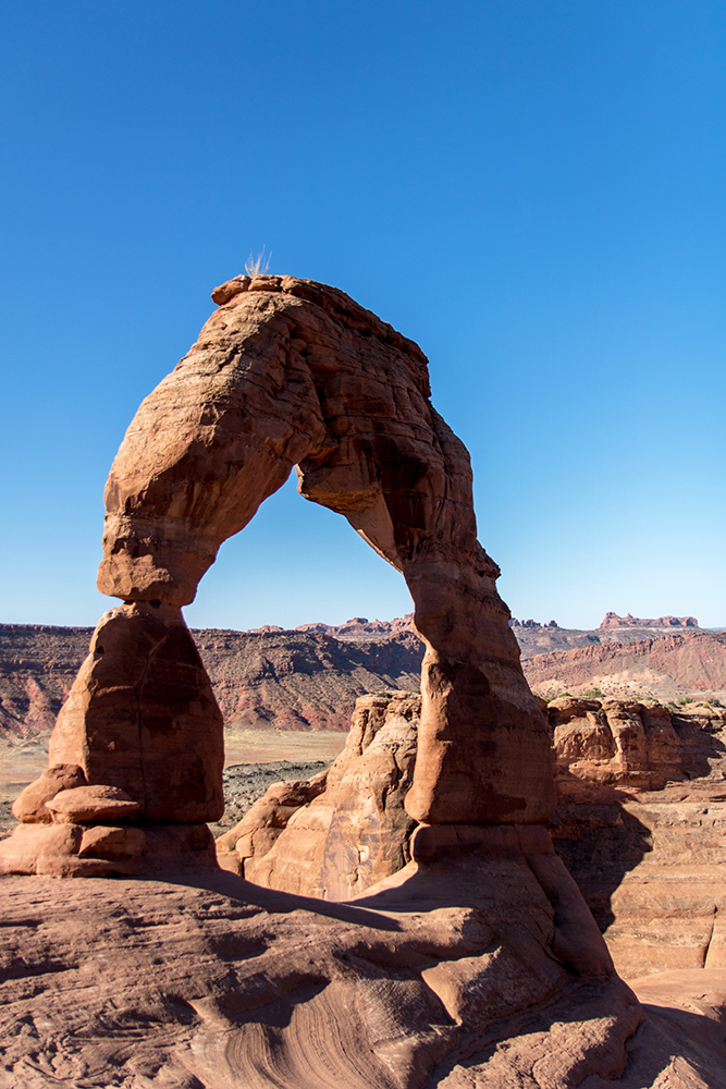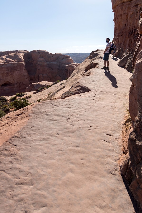 This narrow section was the last remaining bit of the hike, and soon the cliff on our right opened up, giving way to an unobstructed view of Delicate Arch.
