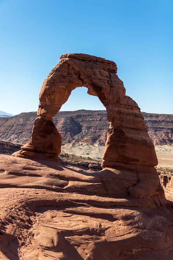 Many other hikers were spread out around the viewing area, and a line of people were queued up waiting for a chance to get their pictures taken underneath the arch. This made it extremely difficult for me to get any pictures sans humans, so I waited for a quite a while, only able to snap one or two shots at a time as one group would leave the arch only to be replaced by another one within seconds. Still I wasn’t about to give up. I’d traveled 1,500 miles and then walked through blazing heat to get to that spot, and I was not leaving without at least of couple of tourist-free photos.