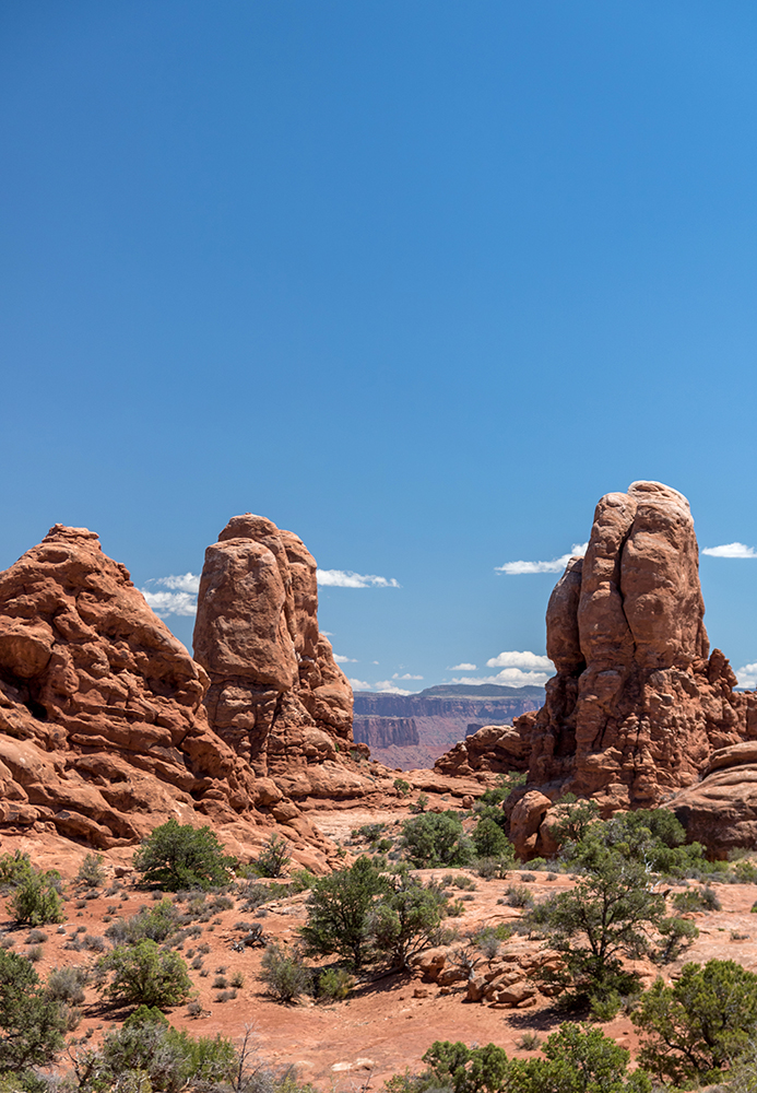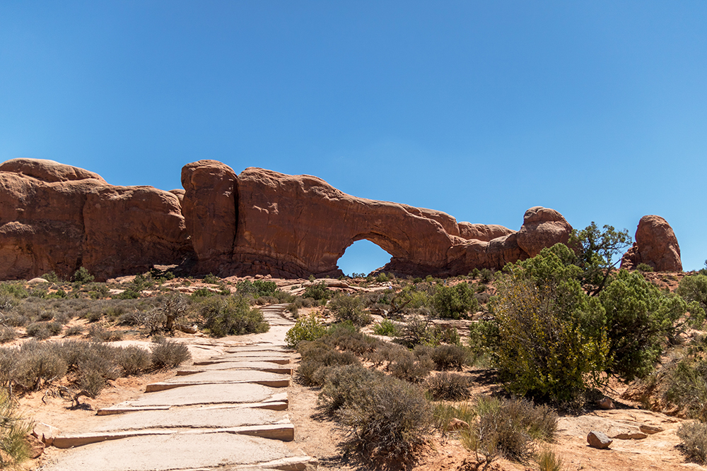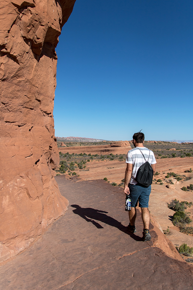 Day four of our cross-country road trip found us at the entrance of my second most anticipated stop, the highly famed Arches National Park. We had arrived early to try to stay ahead of the heat and the crowds, and I consulted our newly attained park brochure as we drove past towering desert monoliths. There were many short hikes on our agenda that day, but Vince and I thought it best to tackle the longest one before the midday heat became unbearable.