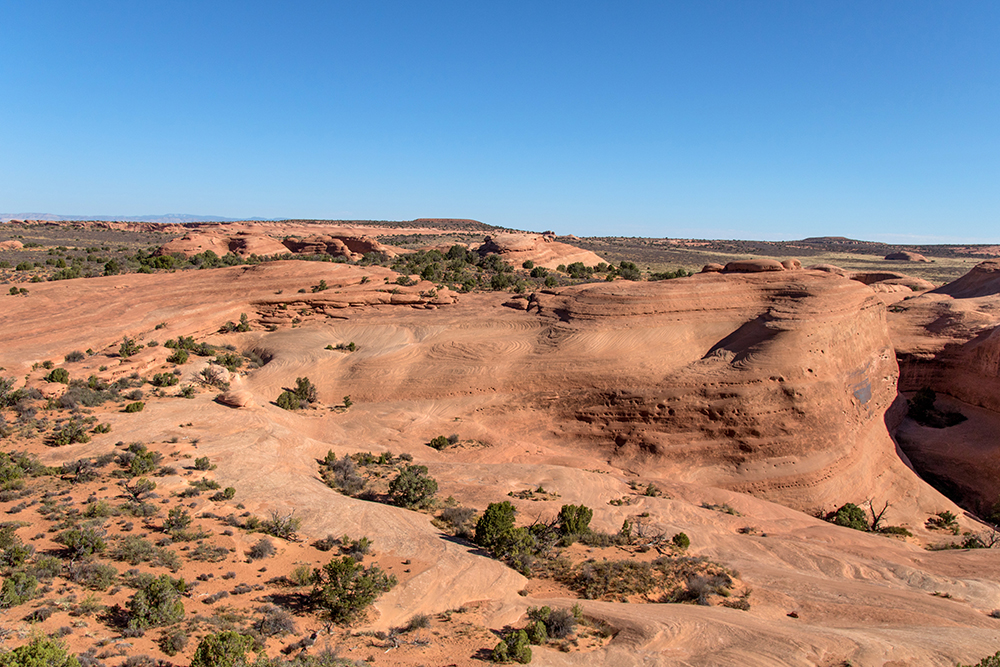 The park brochure labeled Delicate Arch Trail as difficult, citing heat, narrow areas, and washes that can be slippery as some of the various treacheries that may await us. Although the heat was a pressing concern for me, I wasn’t too worried. The trail was 3 miles round trip, and gained only 480 feet of elevation, so if we made sure to keep hydrated I didn’t think that there was much chance of disaster befalling us.