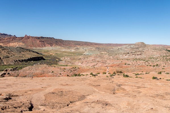 I must admit that the novelty of seeing arches was beginning to wear off by the time we got back in the car. I was hot, tired, and hungry and it would not have taken much convincing to get me to call it a day and go find some food. Vince however, wanted to press on a little longer. So, we drove to end of the main park road where we parked near the Devil’s Garden trailhead. Devil’s Garden is an expansive section of the park that has arches strewn about on hikes that can last as little as one and as many as seven miles.
