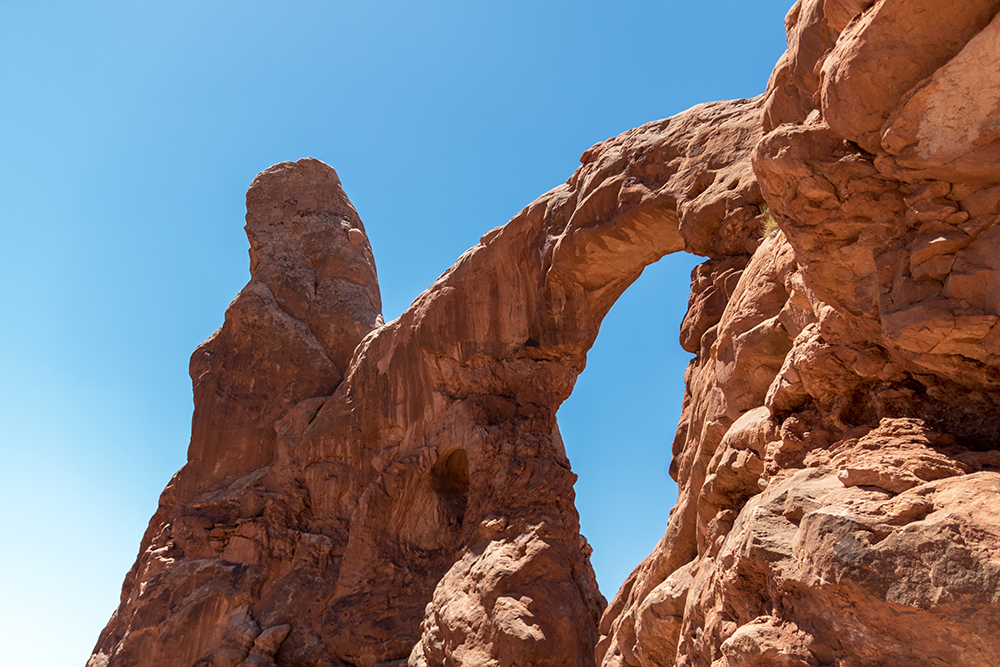 There was no mystery as to how Double Arch earned its name, and the sight of the twin arches against brilliant blue sky was nothing less than awe-inspiring. While the contrast between bright red rock and deep blue sky looks striking in photographs, the pictures truly cannot do justice to just how gargantuan Double Arch feels when you are standing beneath it. Looking up at it spider-like legs, I couldn’t help but feel dizzy as my eyes tried to take it all in.