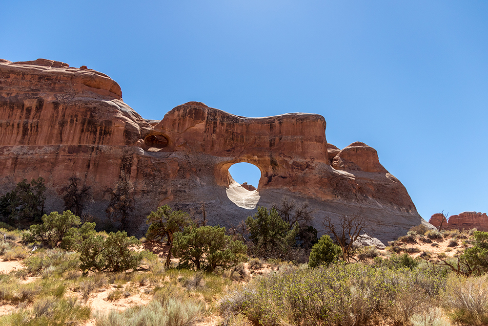 I was glad that we had made it out there after all, despite how worn out I felt. On the hike back though, we made one last detour to look at Tunnel Arch, and it was underwhelming enough (at least compared to everything else we’d seen that day) that we felt confident in our decision to head back to Moab to find food.