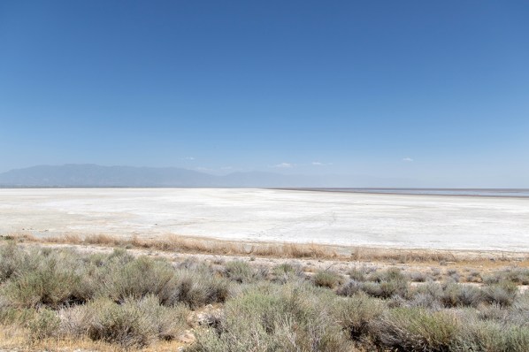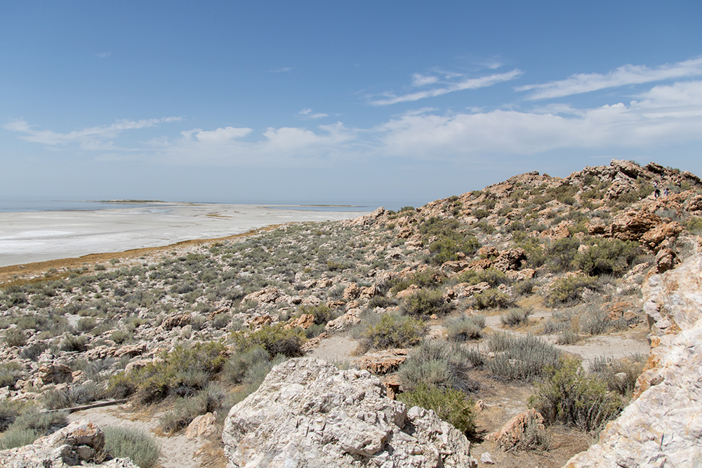 We stopped at a couple of pull-offs to admire the unique landscape. The air was thick and hazy that day, so we could barely make out mountains across the lake, which was so still it looked like a giant mirror reflecting the blue sky.