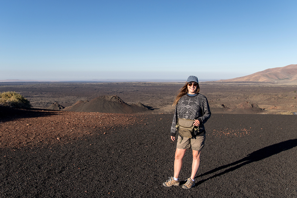 After Devil’s Orchard we headed to Inferno Cone. This short, but steep hike climbs up a tall hill made of volcanic scree. We were lucky enough to have the popular hike to ourselves, and we had a blast climbing up the lava rock to admire the panoramic view from the top. It was a nice clear morning so we could see mountains in the distance, and more volcanoes below us.