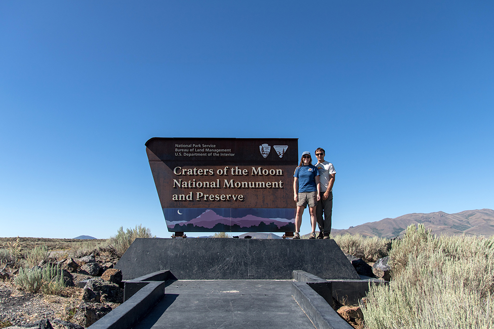 After a quick shower we were back on the road and soon we crossed into Idaho, my 34th state. We managed to reach our next park, Craters of the Moon National Monument just in time. We got one of the last sites at the Lava Flow Campground and were able to set up camp and eat a light dinner just as the sun was going down. We settled into the back of the Dodge for an early bedtime because we planned to wake up early the next morning.