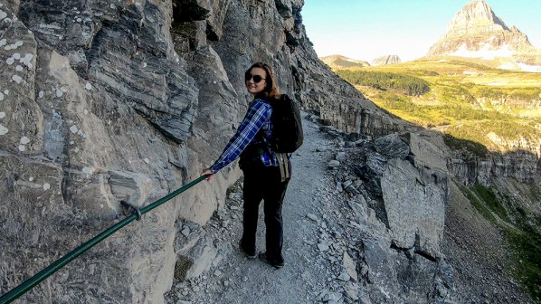 I had counted on the hike to Hidden Lake taking up most of the day, so now we were in the position of having to improvise. Rather than take a bunch of time to discuss ideas, we crossed the road and started walking along the nearby Highline Trail instead. We had no intention of hiking the entirety of this nearly fifteen mile hike because even if we had prepared for a trek of that length, my bum leg would not have been up for it. We did however make it to the trail’s first major landmark, a ledge along the Garden Wall, as we discussed how to spend the rest of the day.