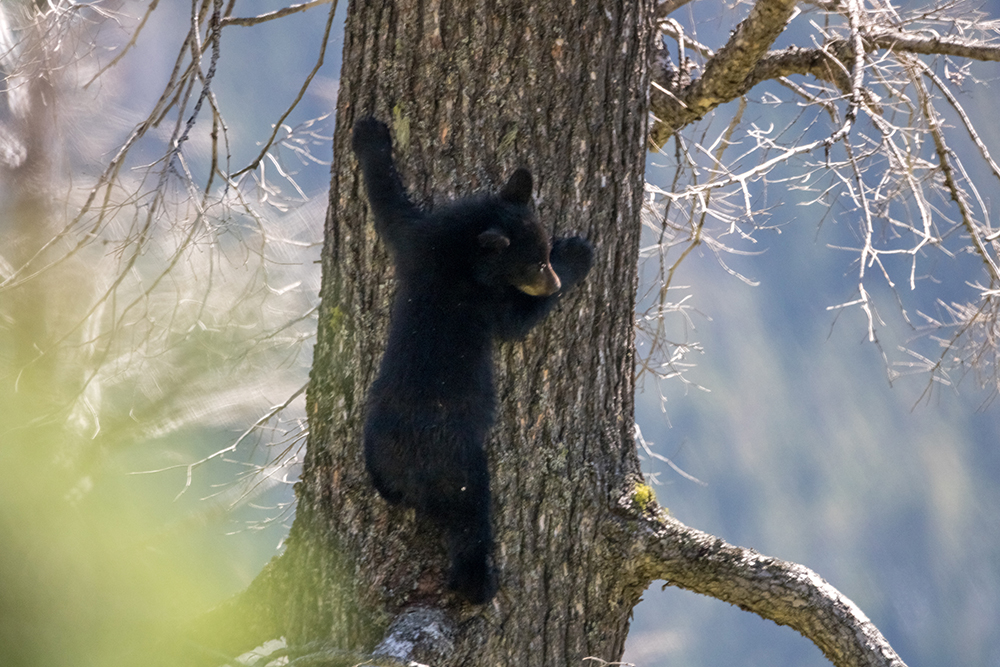 Vince somehow managed to squeeze the Dodge into the pull-off, and we slapped on our face masks before jumping out of the car. Sure enough, it was a bear sighting. But it wasn’t just your average, every-day bear sighting; it was three cubs all lounging in a distant tree. This looked like a job for the 600mm lens. Even with that much zoom power, the bears were still too far away to get any groundbreaking photos, but it did make it much easier to watch them as they climbed around in the tree. I was totally enamored with the triplet fluff-balls, and we stayed and watched them for as long as possible until they eventually climbed down the trunk, presumably to join up with momma bear.