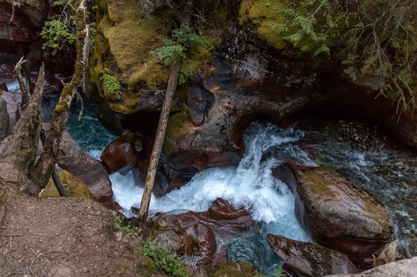 The Cedars Trail is very short, but we continued along when we came to the junction of Avalanche Lake Trail. A relatively easy uphill hike led us past a red river bed full of potholes.
